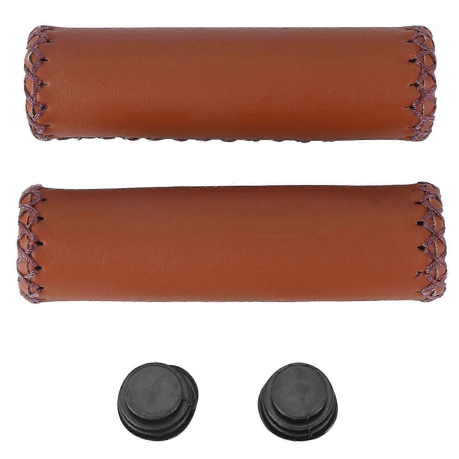 Pair Vintage leather bicycle Grips Grips trekking handlebars Cover Colour: Brown