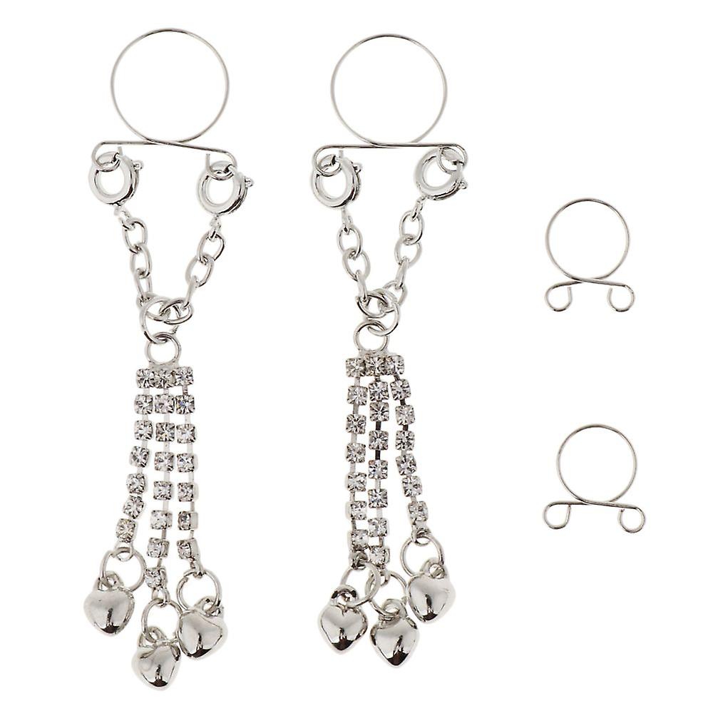 Pair Non Piercing Clamp Clip On Nipple Ring Silver Bell Body Jewelry