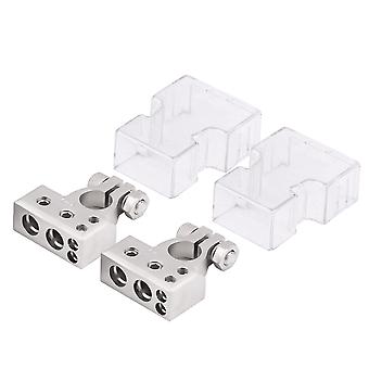 Pair of Car Battery Terminal Positive & Negative Connector Clamp Silver for 0/1 2 4 8 AWG Gauge