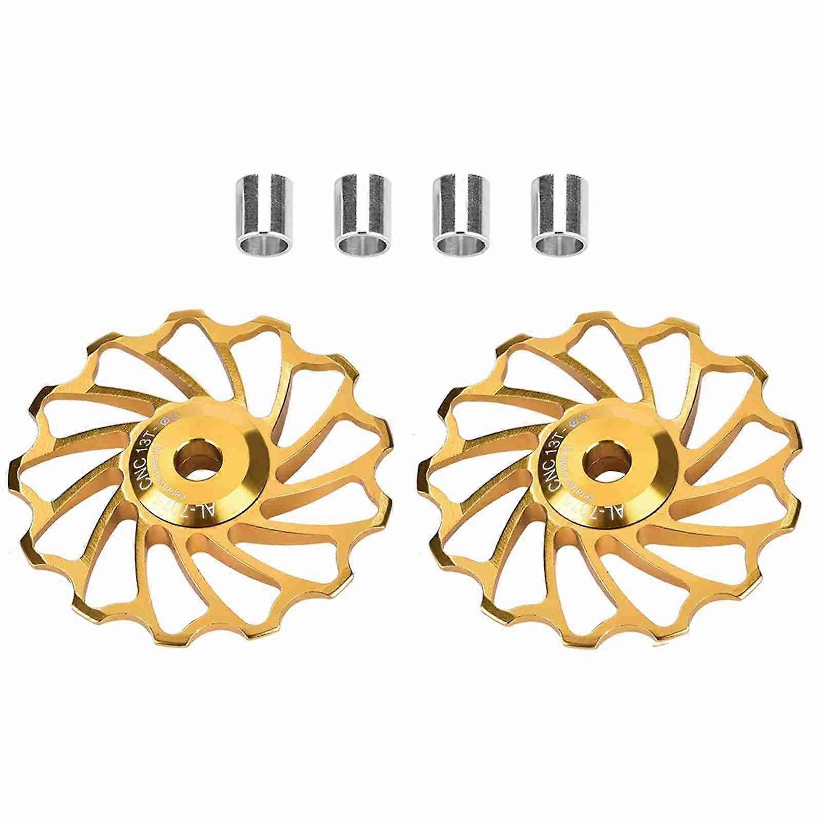 1 Pair MEIJUN Ceramic Bearing Rear Pulley Jockey Wheel Bike Guide Roller (13T, Golden)