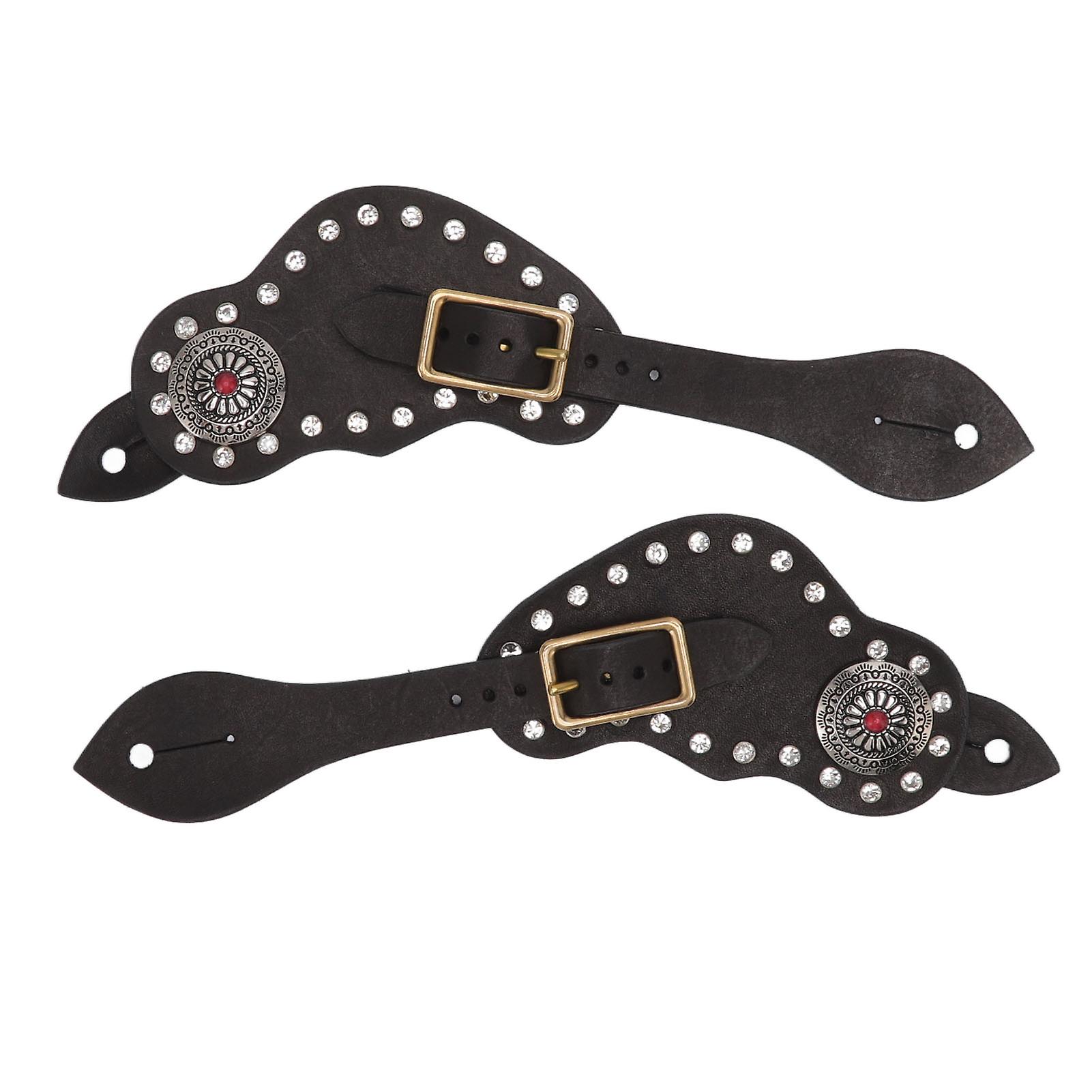 1Pair Spur Strap Leather Rhinestone Western Vintage Style Horse Riding Protective Equipment for Outdoor Black