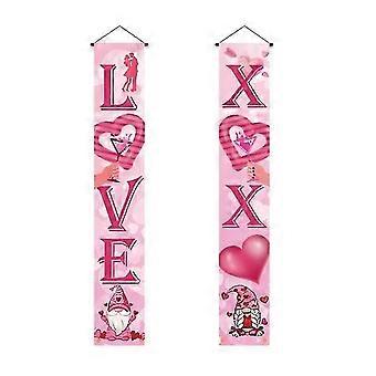 1 Pair Valentine's Day Couplet Love Heart Letter Reusable Rectangle Holiday Decoration Porch Sign Hanging Banner Backdrop Party Supplies