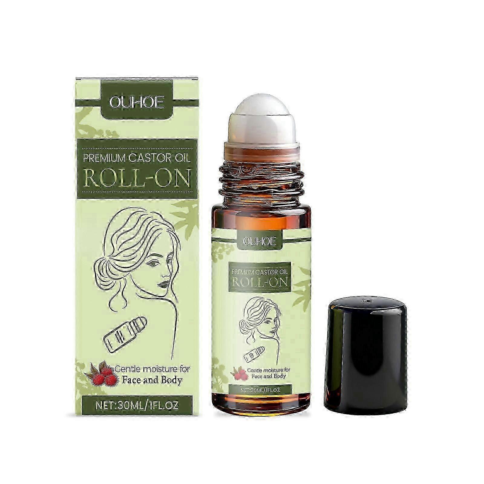 Premium Castor Oil Roll-On 30ML - Vitamin E & Glycerin Moisturizing Oil for Face & Body, Gentle Hydration Roller Ball for Dry Skin, Soothing Travel-Si
