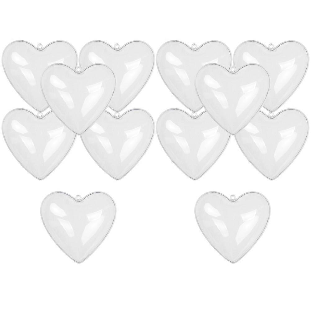 Clear Heart Shaped Plastic Christmas Ornaments, 12pcs Refillable Hanging Baubles for Tree Decoration, DIY Party, Wedding, Valentine's Day, Bulk