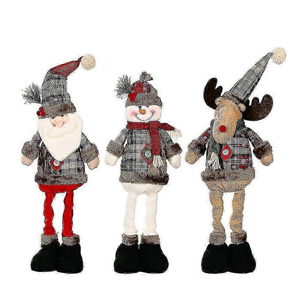Xmas Ornaments Christmas Retro Snowflake Checked Cloth Retractable Doll Ornaments Xmas Gift