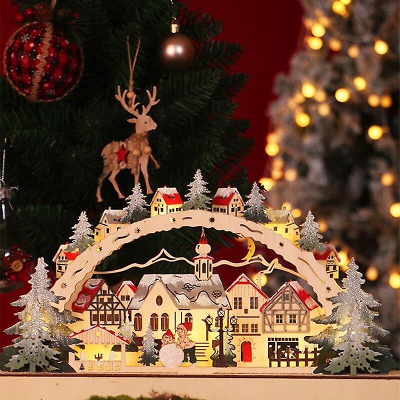 Christmas Decoration 2023 Village Houses Night Light Xmas Ornament Forest Scene Wooden Collection Noel Decoration 2023 Xmas Gift