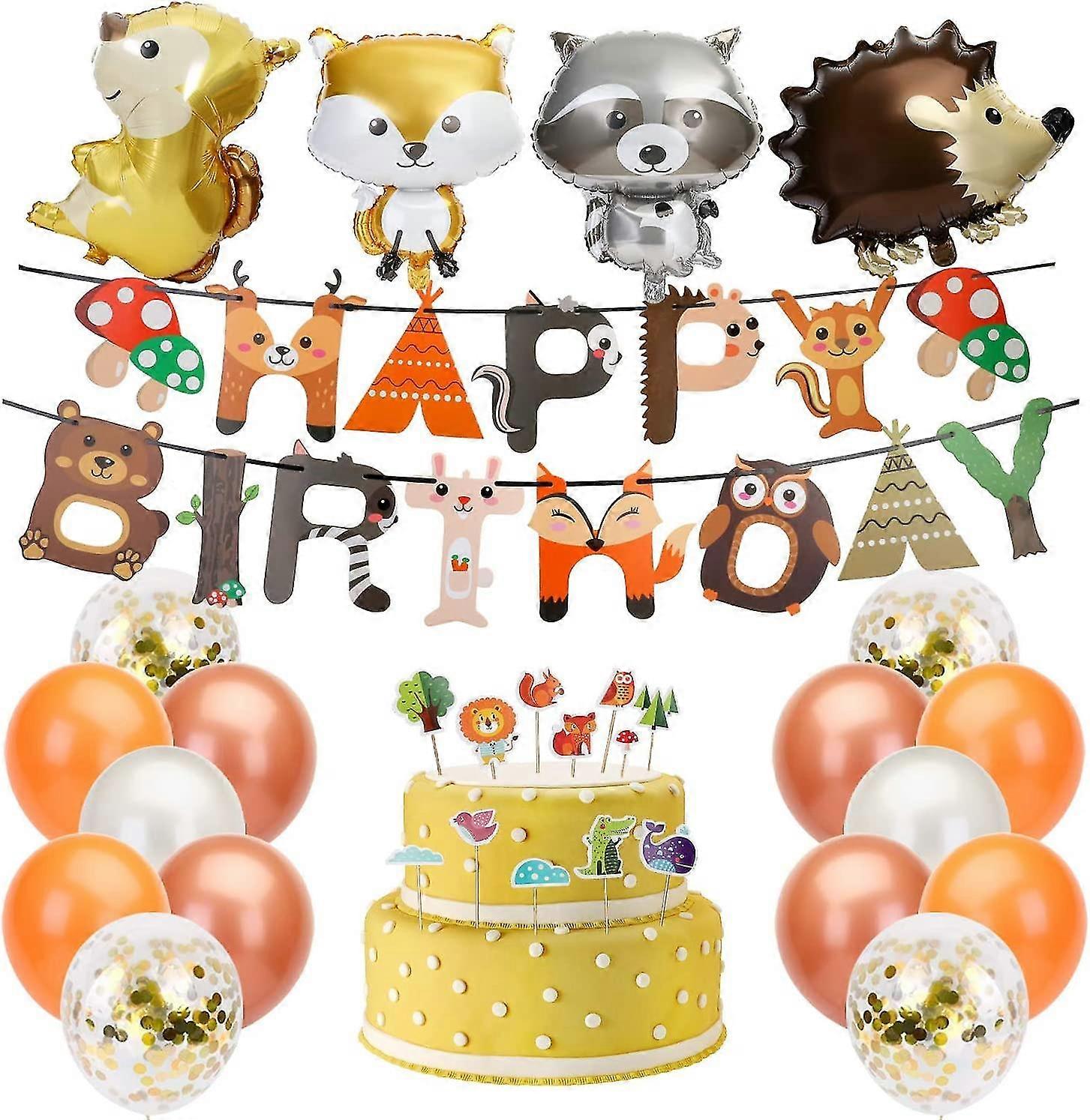 Animal Birthday Decorations,Happy Birthday Banner, Latex & Confetti Balloons,Animal Balloons, Cupcake Toppers,Balloon Birthday Decorations for Boys &