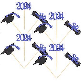 Graduation Cake Decorations 2024 Grad Party Cupcake Toppers Cap Shape Blue Paper Decoration 12Pcs
