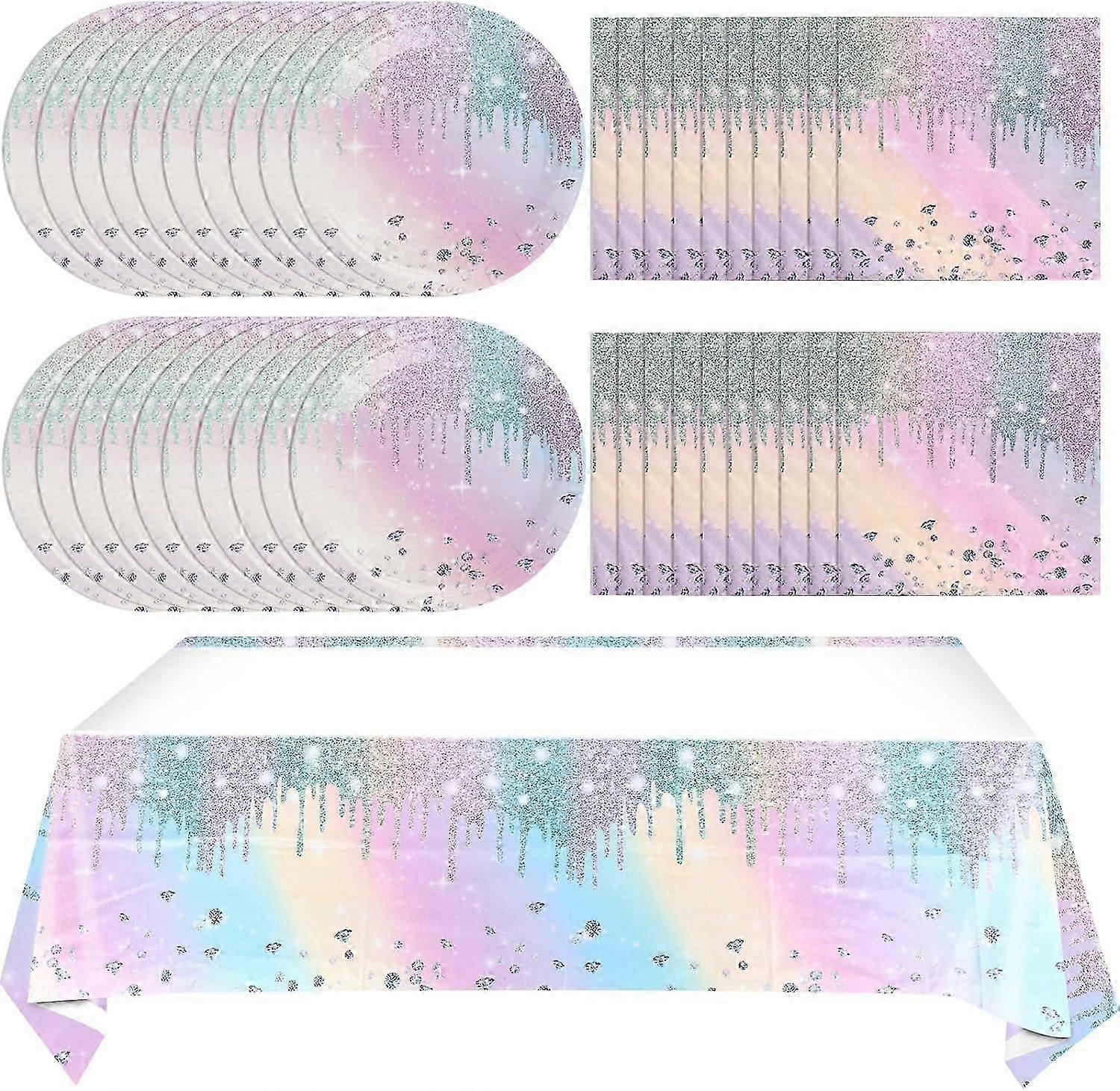 Iridescent Diamond Birthday Party Supplies Decorations, Disposable Paper Tableware Includes 20 Plates 20 Napkins and 1 Tablecloth , Serve 20