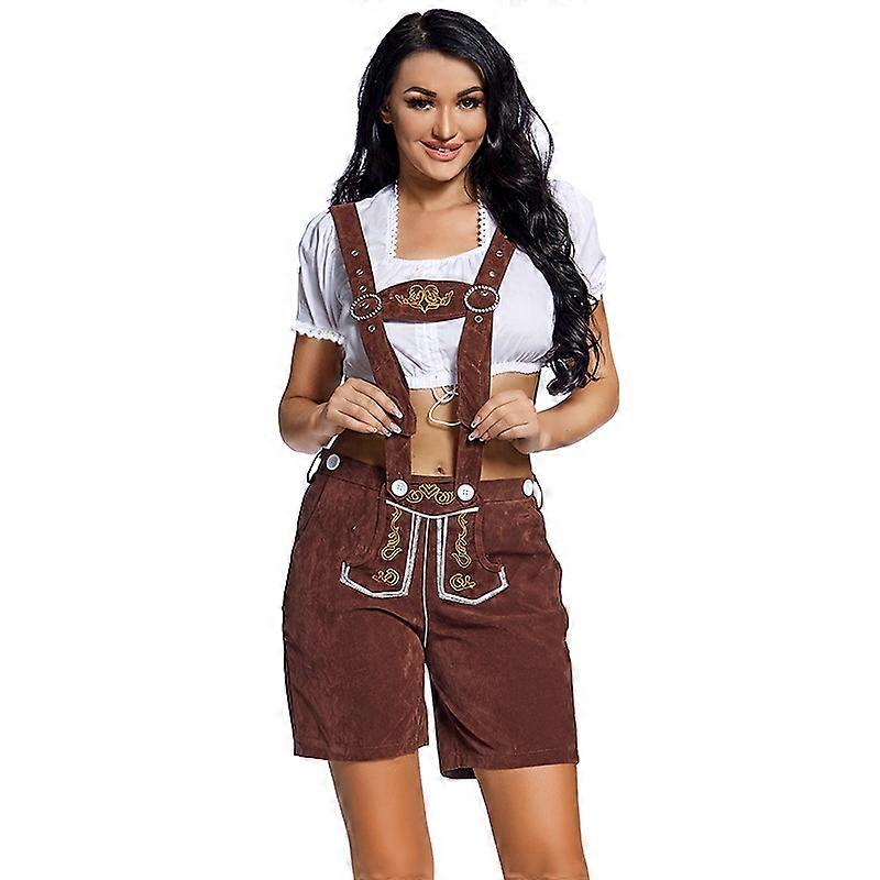 Oktoberfest Beer Costume for Adult Women German Bavarian Shorts Outfit Overalls Shirt Hat Suspender Short Set Halloween Costume