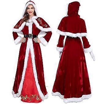 Mrs Santa Claus Costume For Women Velvet Hooded Dress Long Sleeve Christmas Clothes - JA