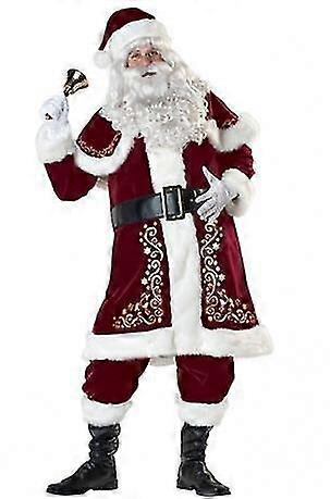 Adult Christmas Santa Claus Suit Costume Deluxe Red Velvet with 8 Festive Pieces for a Fancy and Memorable Holiday - MXBC