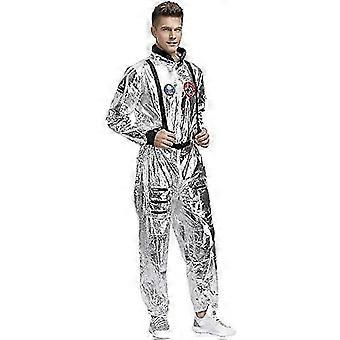 Men's Astronaut Costume for Adults, Silver Spaceman Jumpsuit with Pockets, Cosplay Outfit for Halloween Performance Parties