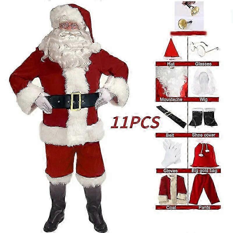 Santa Claus Costume Red Deluxe Xmas Men Santa Claus Disguise Suit New Year-Yogu