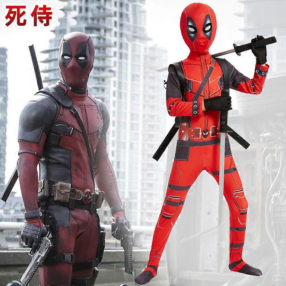 Deadpool Bodysuit Costume for Kids Adults with Dual Katana Backpack Mask Gloves Halloween