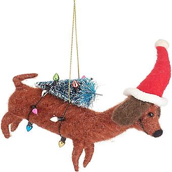 Sass & Belle Felt Sausage Dog with Tree Christmas Decoration