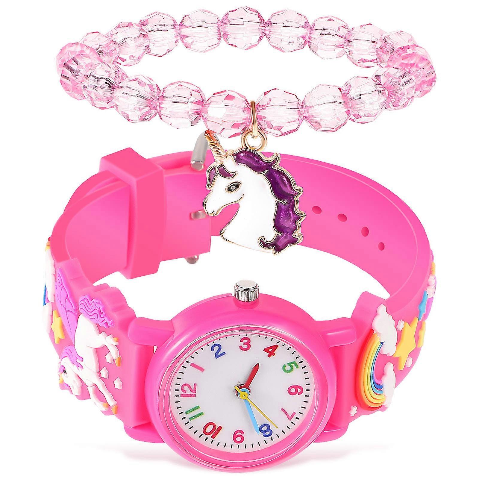 Watches For Children Unicorn Watch Beaded Bracelet Kids Daily Wear Silicone 1Set