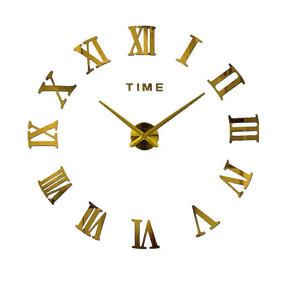 Large Digital Wall Clock Acrylic Mirror Surface Home Decor Modern Design Golden 1Set