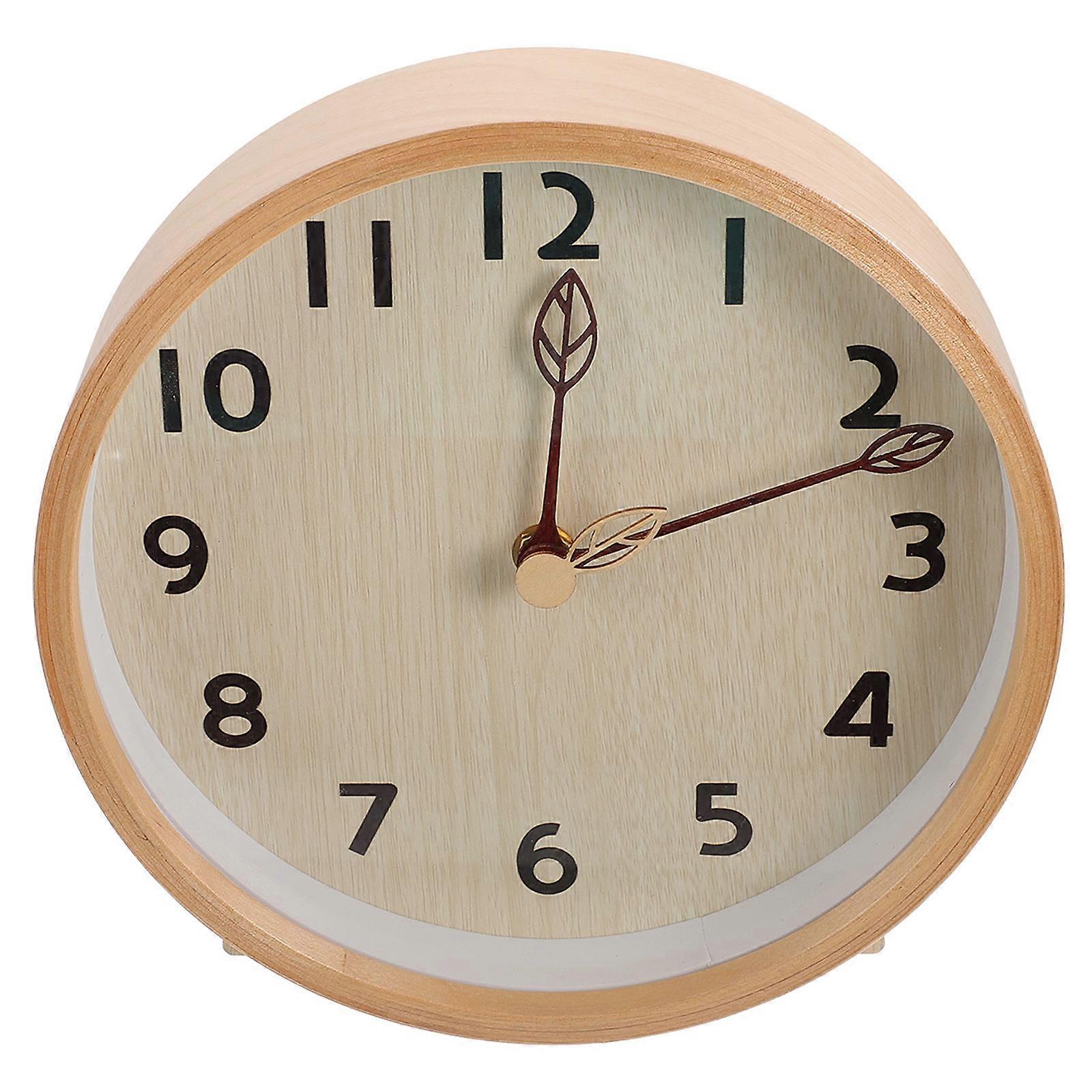 Wooden Desktop Silent Clock for Office Decor 1Set Table Ornament