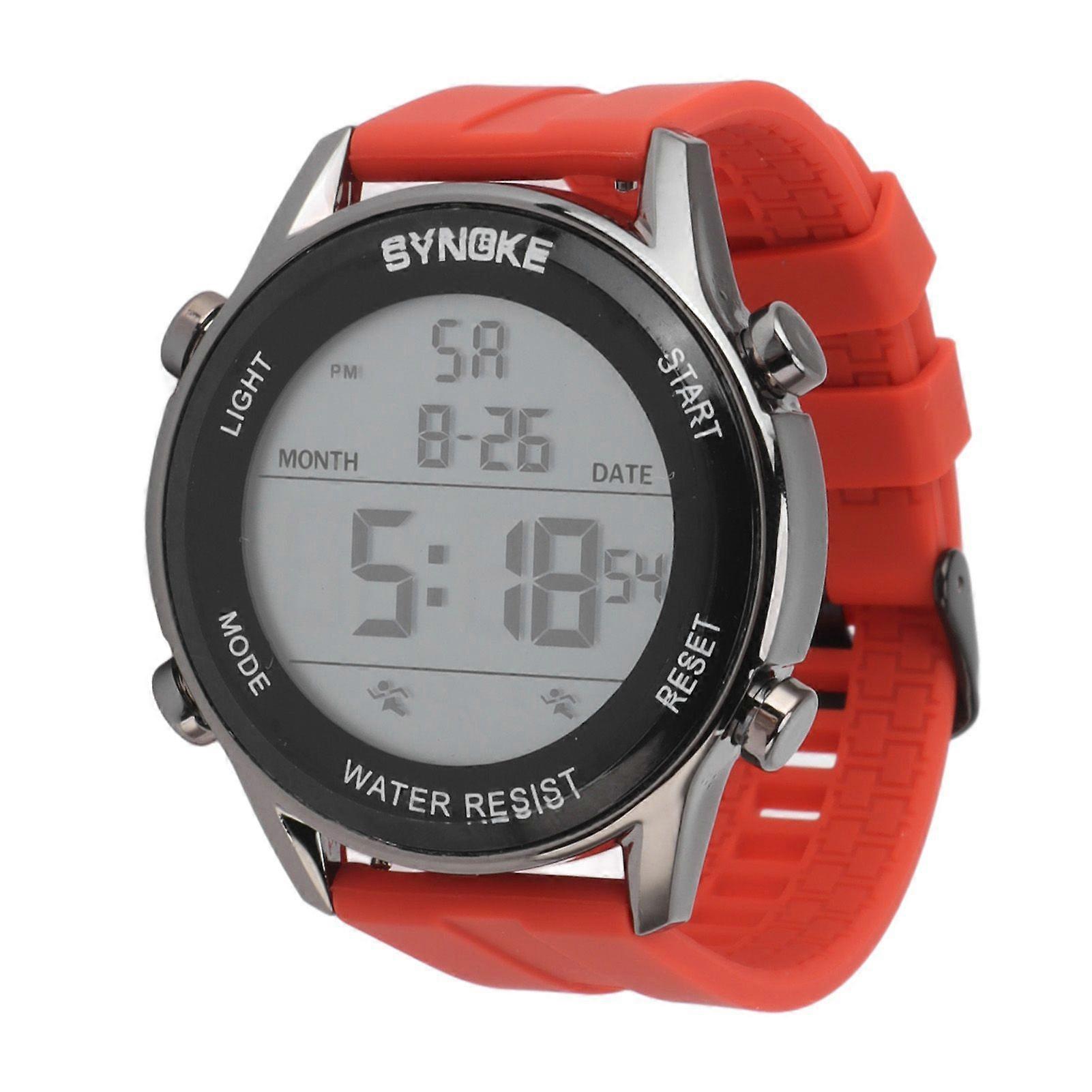 Sports Watch Digital Electronic Luminous Waterproof Large Screen Men Watch Silicone Watch Band for Outdoor Activities Red