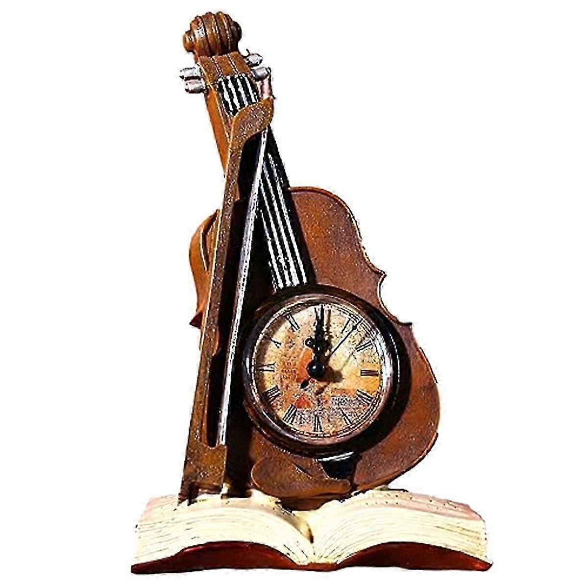 Vintage-Style Digital Desk Clock with Miniature Violin Decor, Unique Gift for Musicians, Elegant Home Office Decoration (Black)