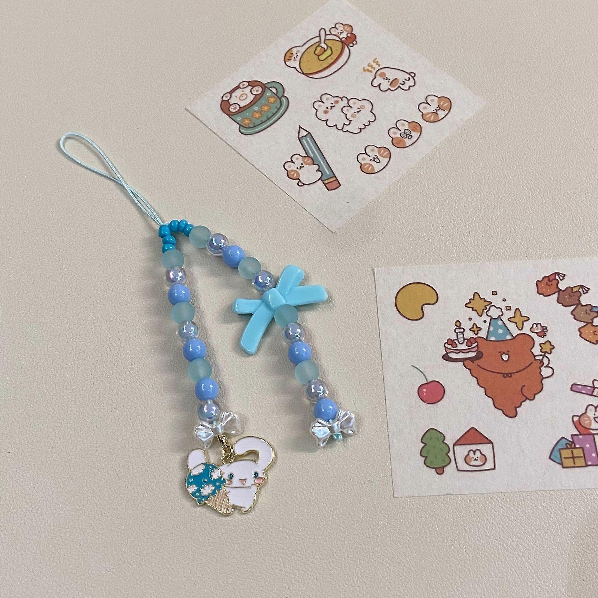 Sanrios Kawaii Hello Kittys My Melody Kuromi Cinnamoroll Cute Cartoon Two Cute Diy Beaded Mobile Phone Chain Bag Pendant