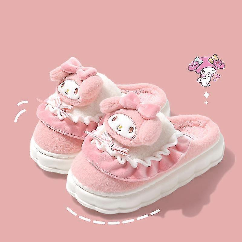 Sanrio Hello Kitty Home Fuzzy Slipper Cartoon Kuromi Cinnamoroll Yk2 Women Winter Plush Non Slip Slippers Girl Cute Flat Shoes