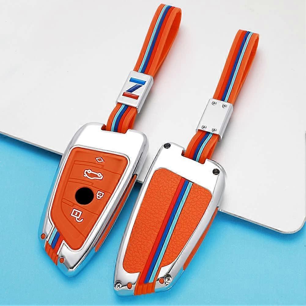 Zinc Alloy + Silicone Car Key Cover Case, BMW 2/3/5/7 Series, X1/X3/X5/X6, F15/F16/F45/F46/F48/F85/F86/G01/G11/G12/G20/G30/G32, 3-4 Buttons, Orange B