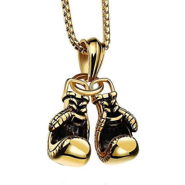 Titanium Steel Alloy Mini Boxing Glove Necklace Gold Color Pair Pendant Chain For Men Boys Charm Fashion Sports Fitness Jewelry(Gold)