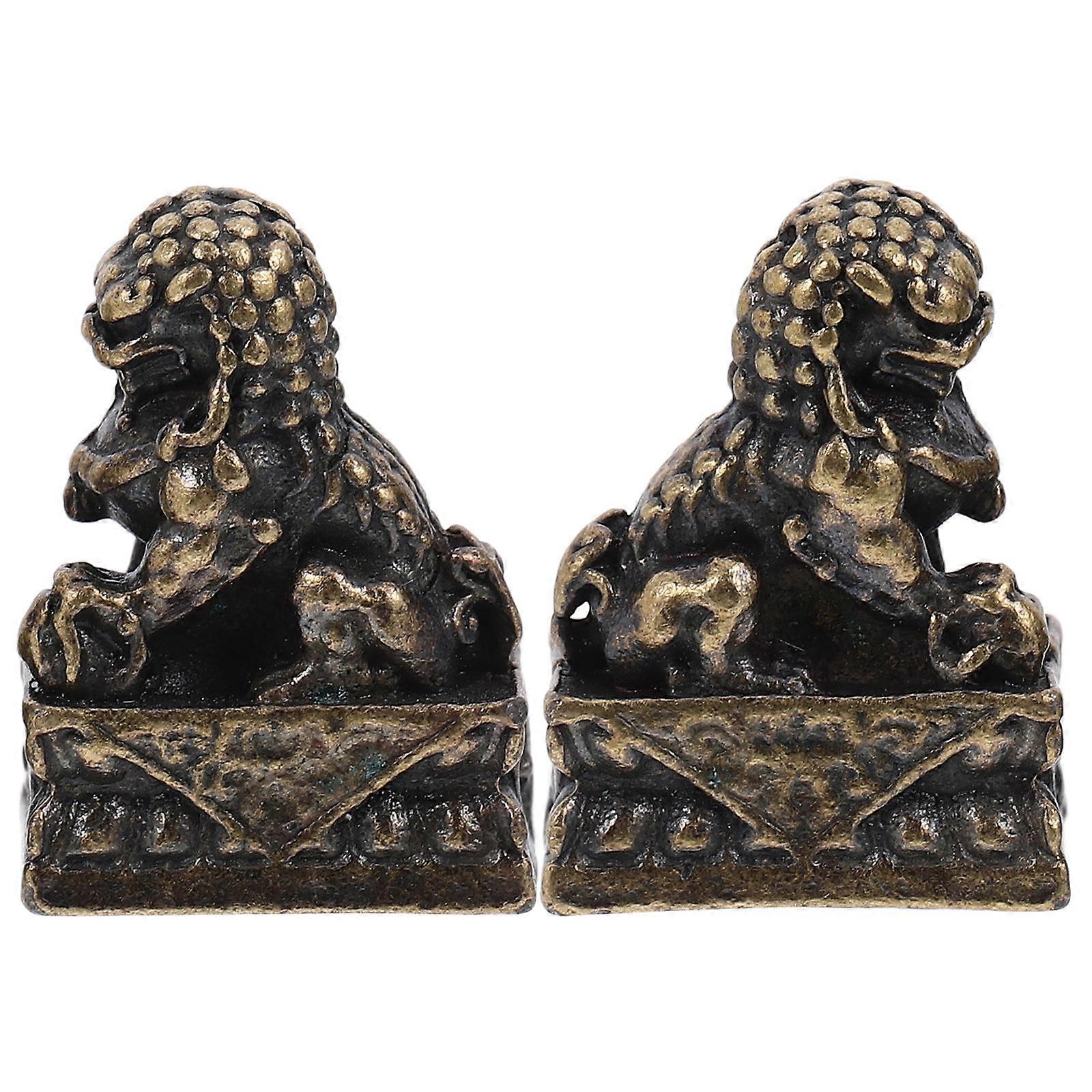 Copper Alloy Mini Guardian Lion Statue Vintage Feng Shui Home Office Decoration Chinese Style Desktop Adornment for Micro Landscape Bonsai Display