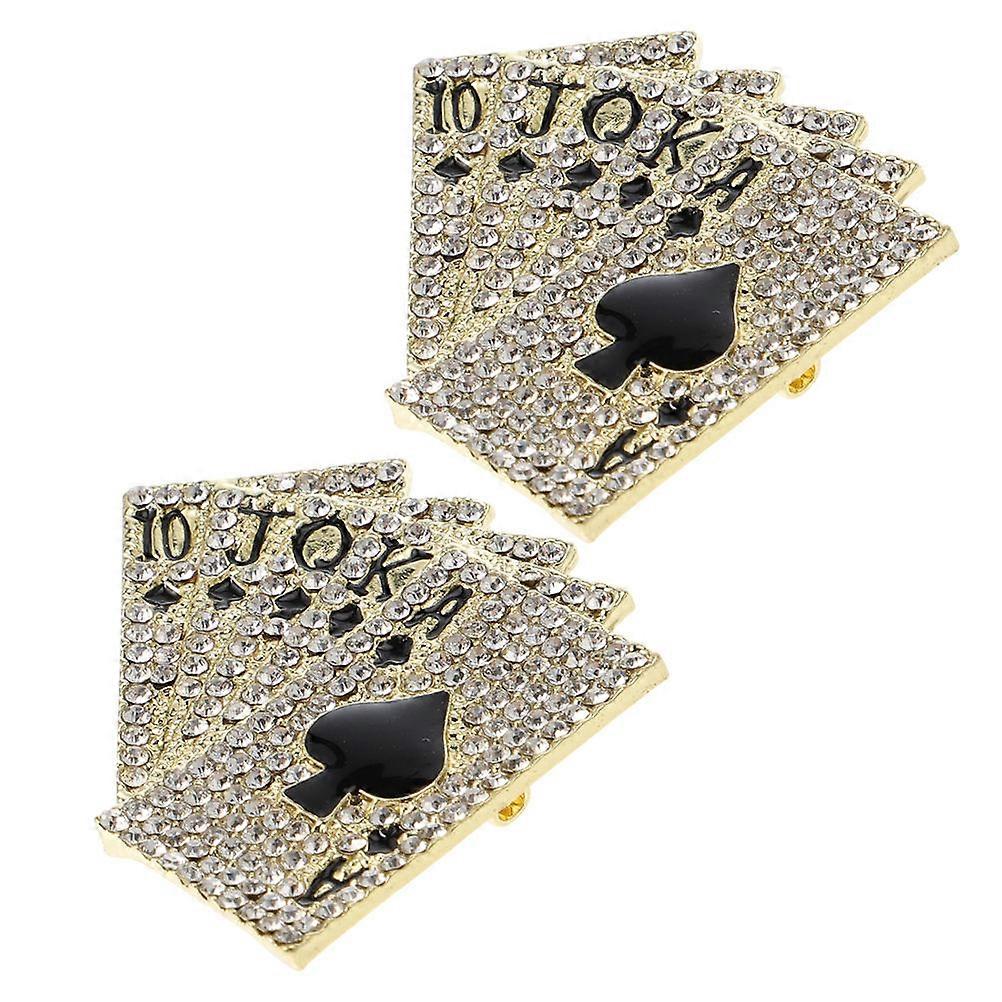 Golden Alloy Rhinestone Card Brooch Pins for Decor Creative Hip Hop Playing Cards Accessory 2 Pieces
