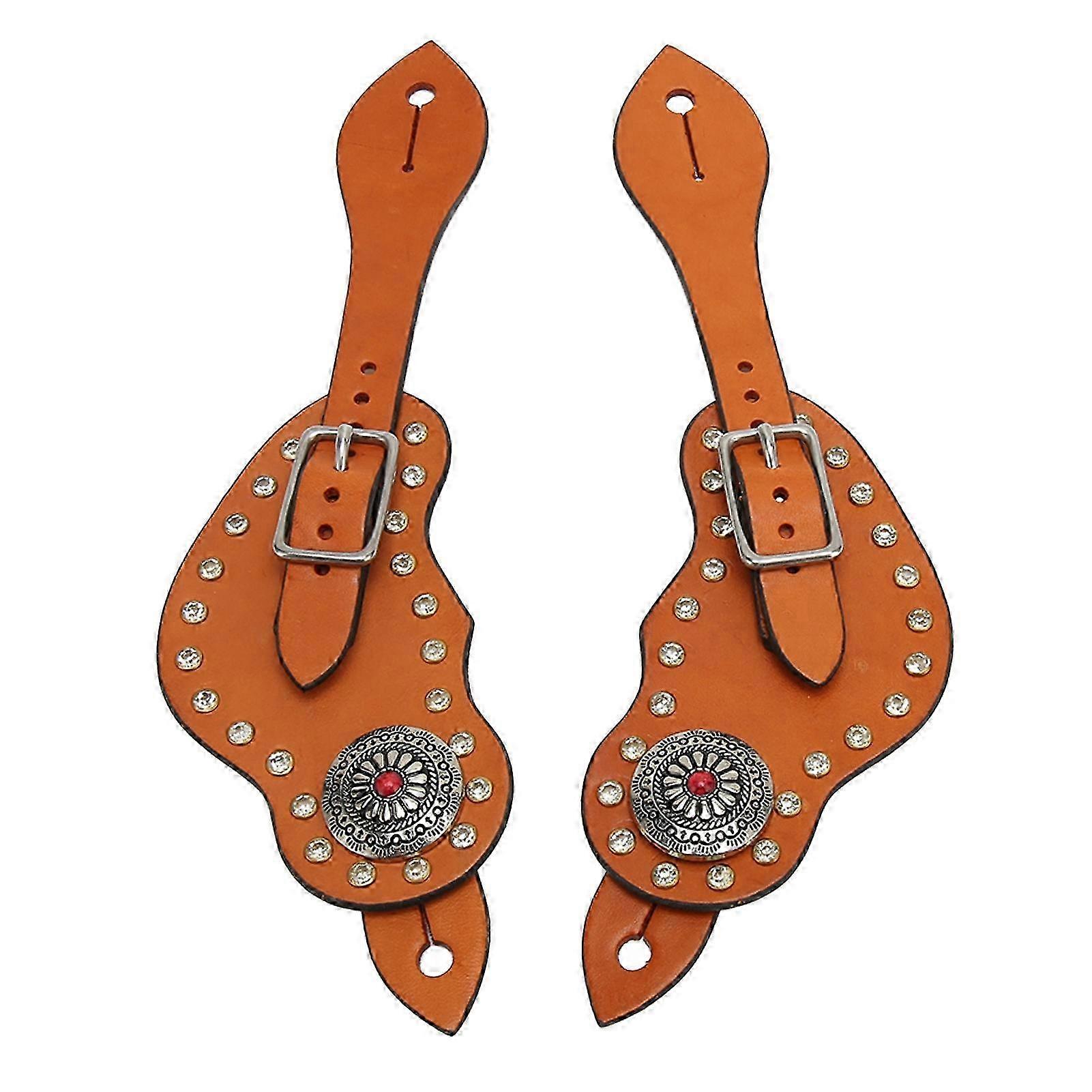 1,STURDY AND DURABLE: Leather spur strap is made of slippy artificial leather and metal material, which is more durable and long lasting. 2,WESTERN VINTAGE STYLE: Spur strap is designed in a western vintage style with a beautiful, decorative rhinestone inlaid surface. 3,ADJUSTABLE LENGTH: Adjustable spur strap has a metal buckle and adjustable length, easy to adjust and wear, fits most riding boots. 4,VERSATILE USE: Brown spur strap can be used as a decoration and fixation for spurs, or as a safety equipment to preserve runners. 5,PRACTICAL GIFT: Western spur strap makes a great gift for equestrian enthusiasts who would love to receive such a practical gift.