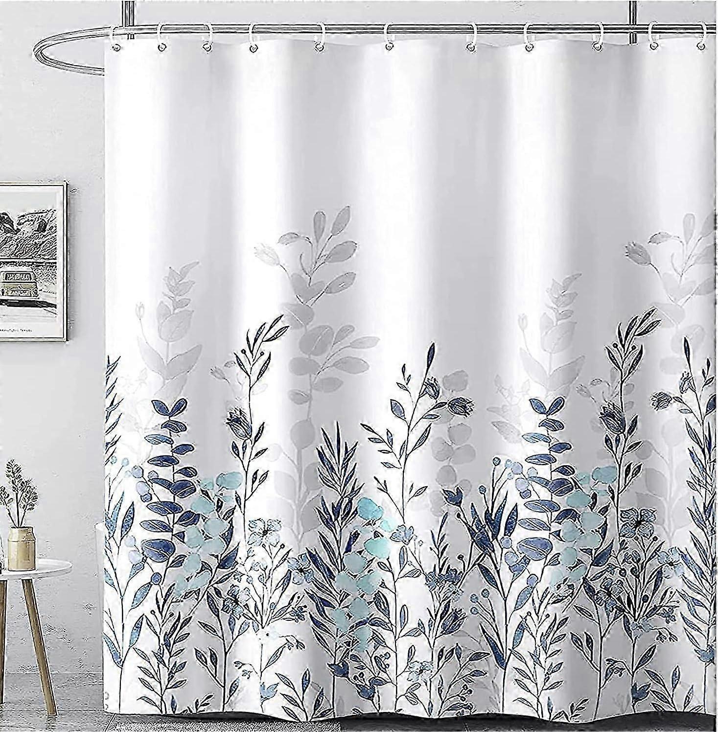 Bathroom Shower Curtain, Blue and Grey Shower Curtain, Watercolor Flower Shower Curtain 180cm*180cm