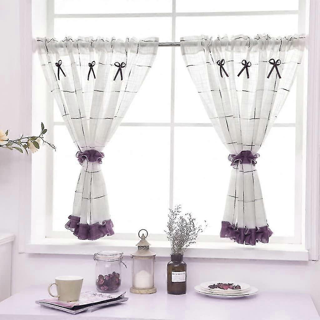 Linen Curtain With Tiebacks, Cotton Blend, Mauve, Bxh 90x90cm1 Piece