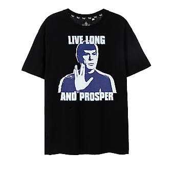 ستار تريك تي شيرت رجالي بأكمام قصيرة أسود يعيش طويلا ويزدهر