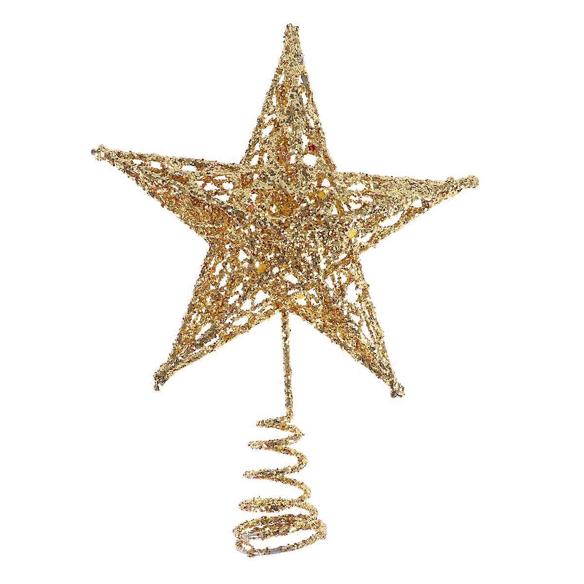 Star Tree Topper 5 Pointed Glitter Treetop Shiny Christmas Tree Ornament for Home Party(Golden)