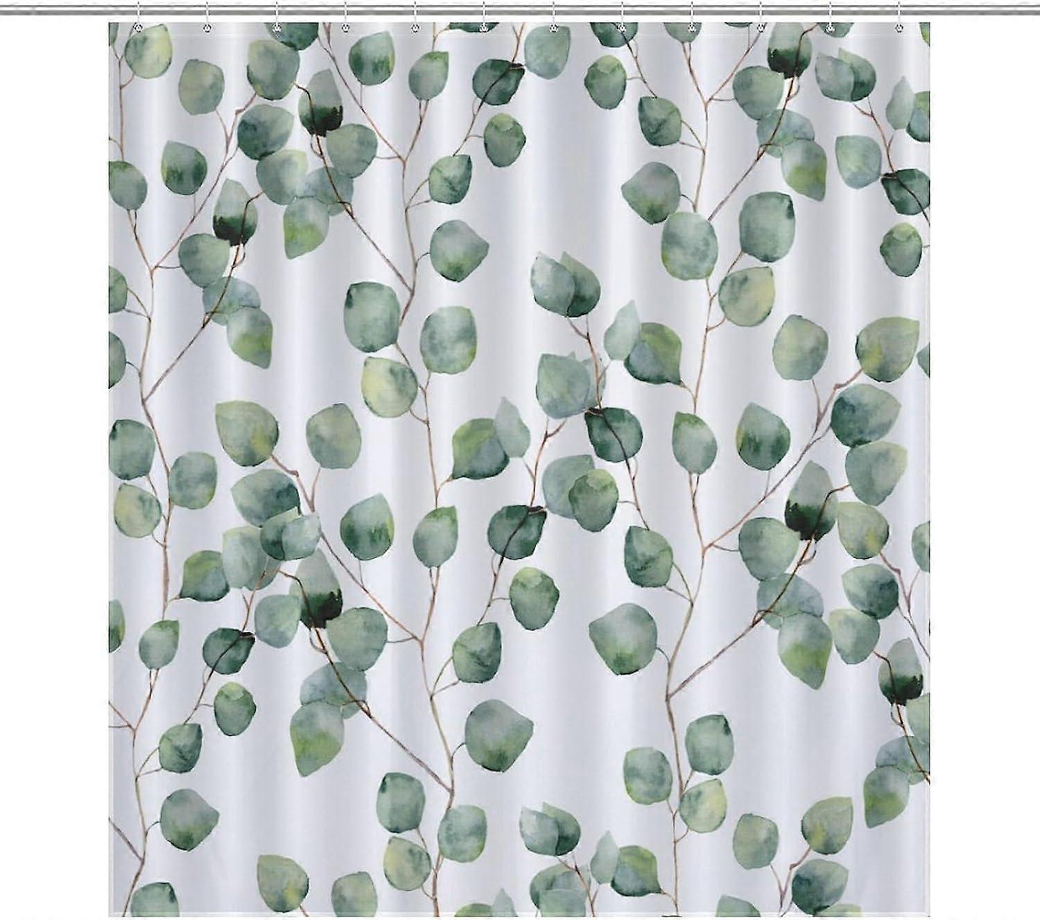 Watercolor Leaf Shower Curtains for Bathroom Decor, Green Leaves Plant Pattern Bath Drapes Set with Hooks, Waterproof Fabric Windows Treatment, 60x72i