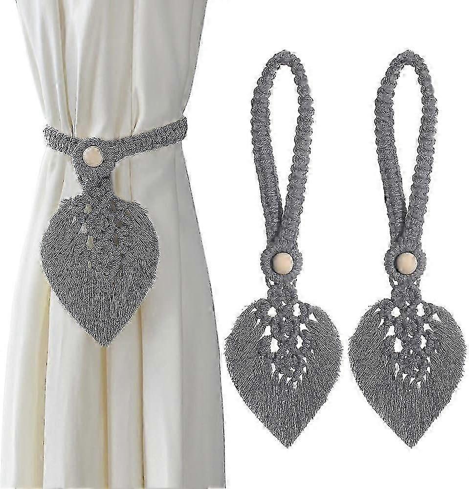 Curtain Tiebacks, Set Of 2, For Curtains, Bohemian Curtain Rope, Handmade, Decorative Clips, Buckle For Office, Home, Bedroom (grey)-QJWL