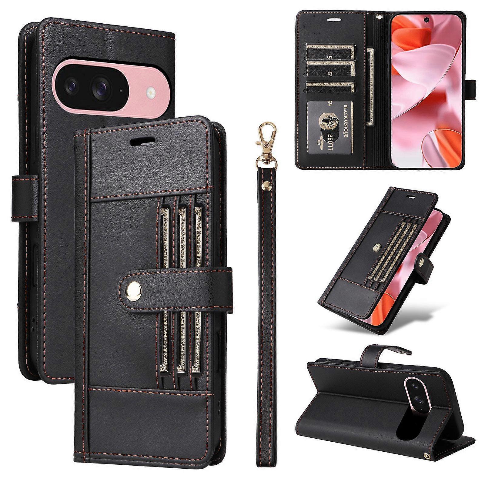 Six Card Slots Buckle Leather Phone Case with Lanyard
