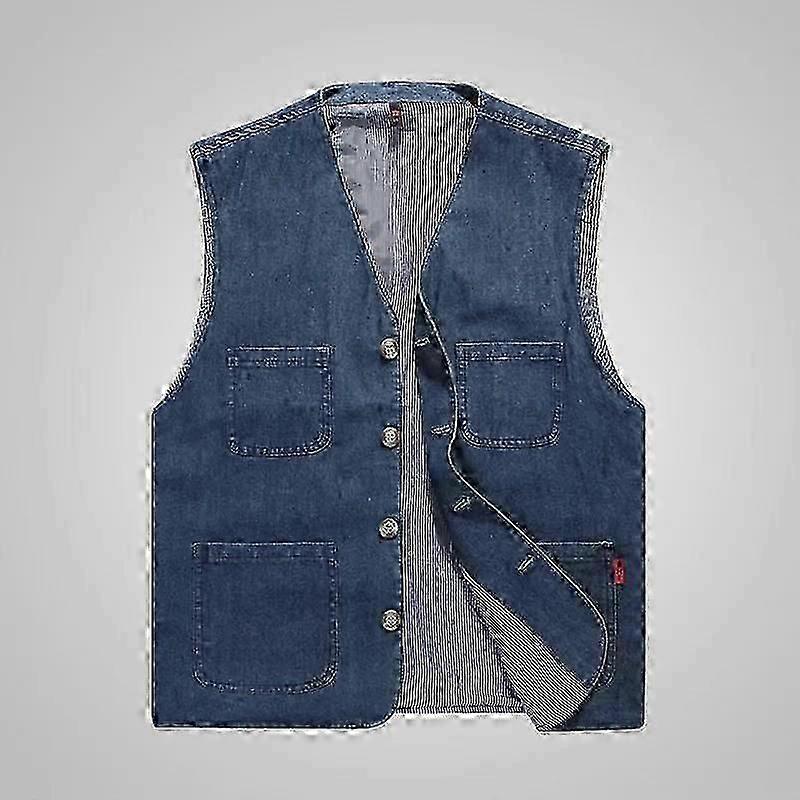 Spring and Autumn Vest Men's Thin Cotton Denim Vest Large Size Sleeveless Waistcoat Father's Day Gift-Good