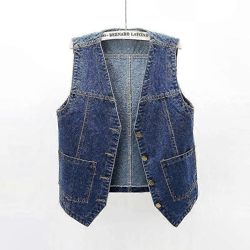 Sleeveless Denim Vest for Women V-Neck Button-Up Waistcoat Jacket with Jean Fabric Design