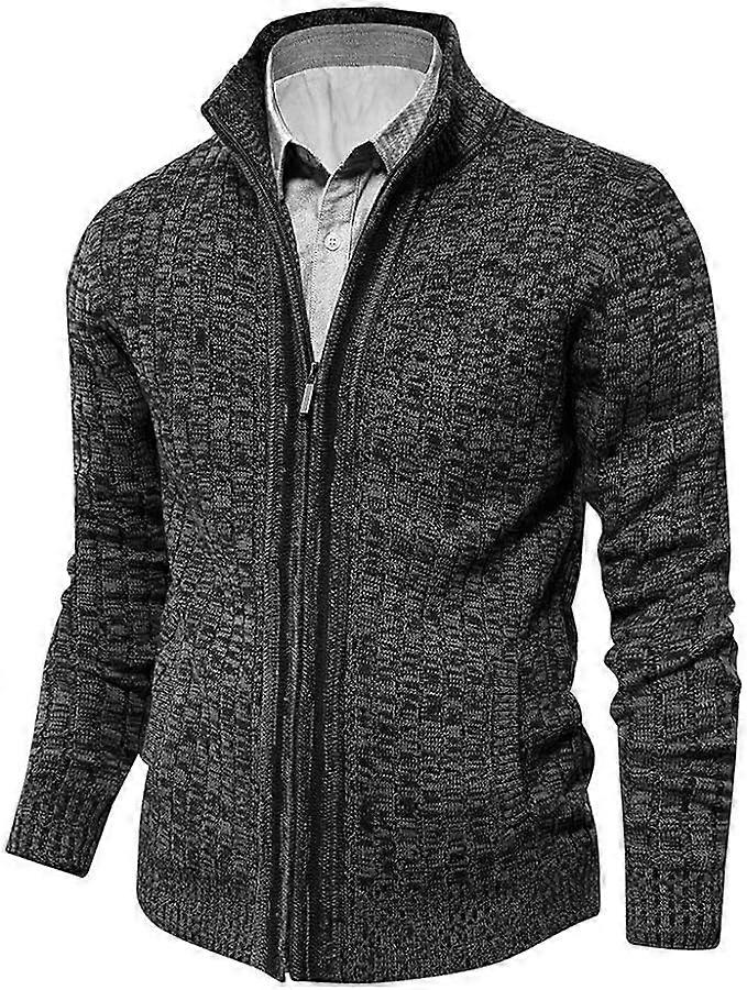 Men's cardigan with stand-up collar, fine strike with zip and pockets