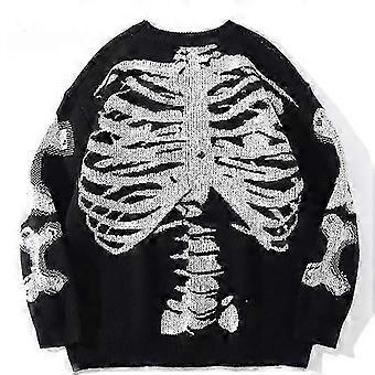 Men Oversized Sweater Black Loose Skeleton Bone Print Women Vintage Retro Knitted Sweater Autumn Cotton Pullover Unisex-Good