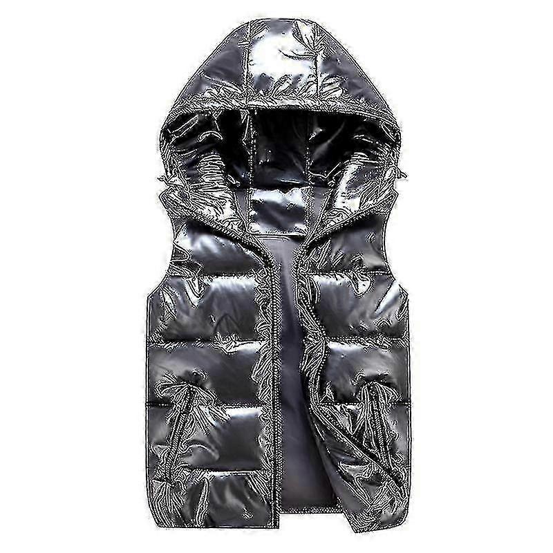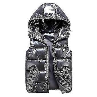 Unisex Shiny Padded Vest with Stand Collar and Hooded Waistcoat for Men and Women