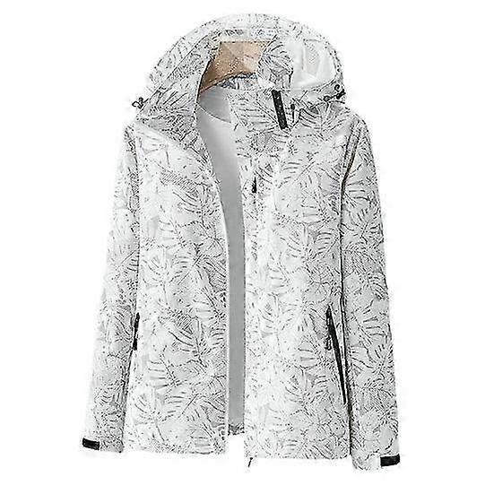 Women Jacket Outdoor Windbreaker Single-layer Waterproof Leaf Print Breathable Long Sleeve Hooded Zi