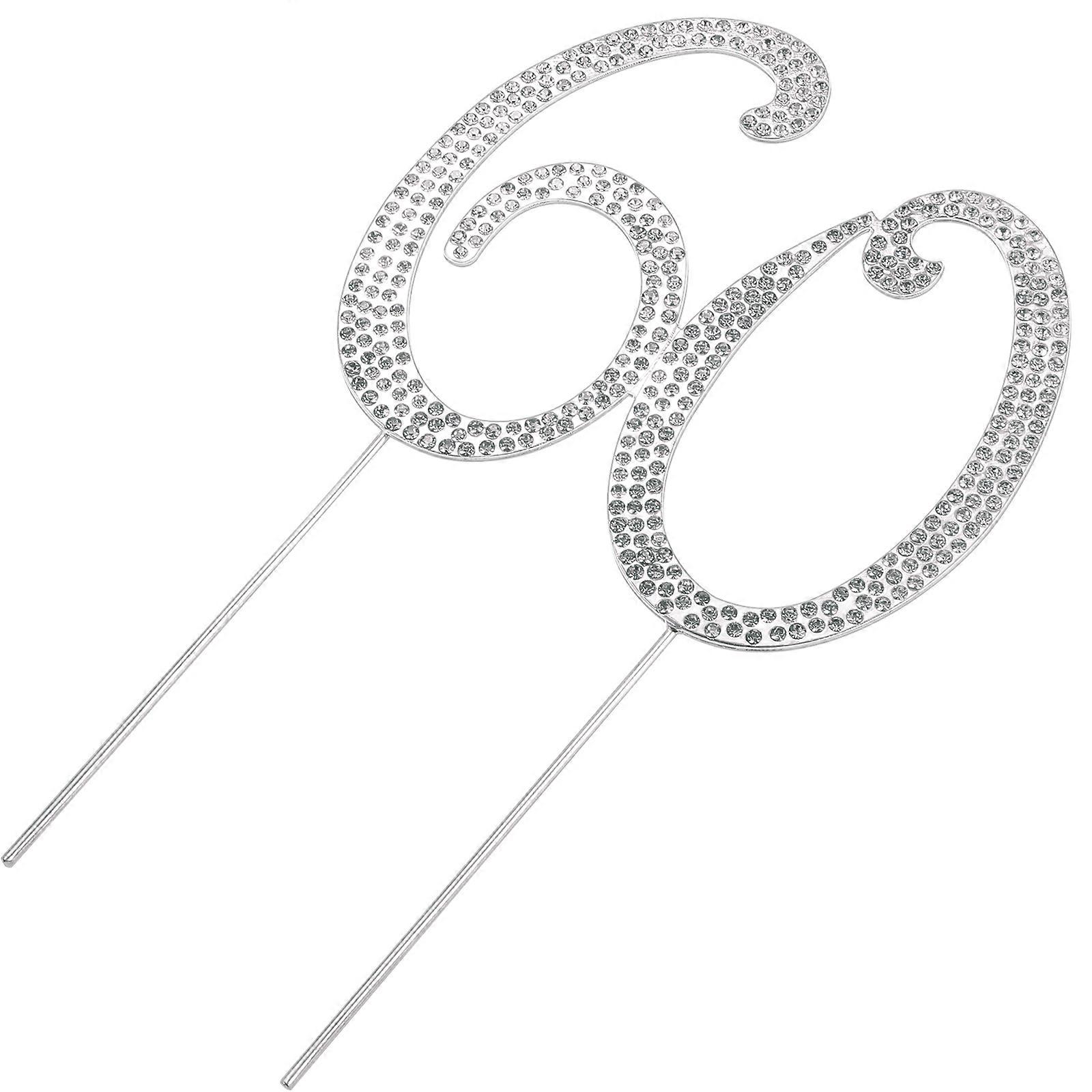 STOBOK 60 Cake Topper for 60th Birthday Party Crystal Rhinestones Decorative Cake Topper Birthday Party Supplies (Silver)