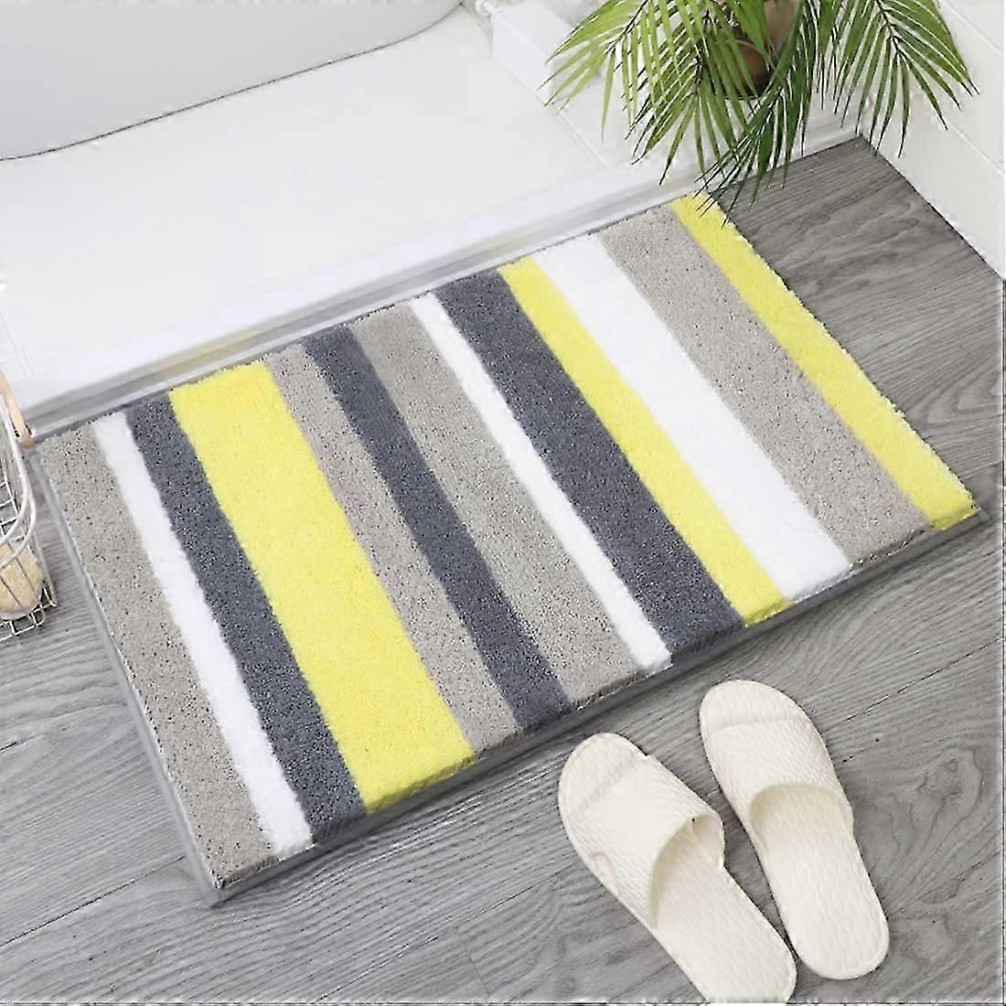 Machine Washable Anti-Slip Bath Mat 40x60x3 cm, Ultra Soft Absorbent Thickened Shower Mat Microfiber Bathroom Decoration, Yellow
