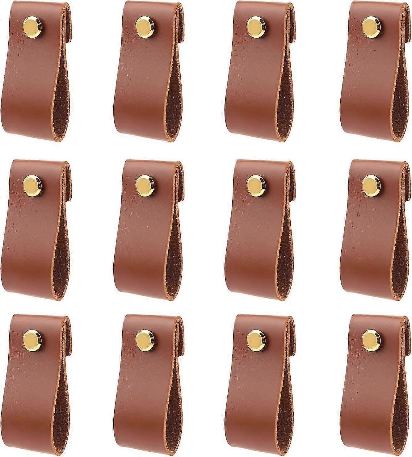 Leather Drawer Pulls, 12 Pieces Gold Leather Handles, Drawer Knob Pull Cabinet Pulls for Single Hole Drawers Wardrobe Cupboards Furniture Kitchen Bedr