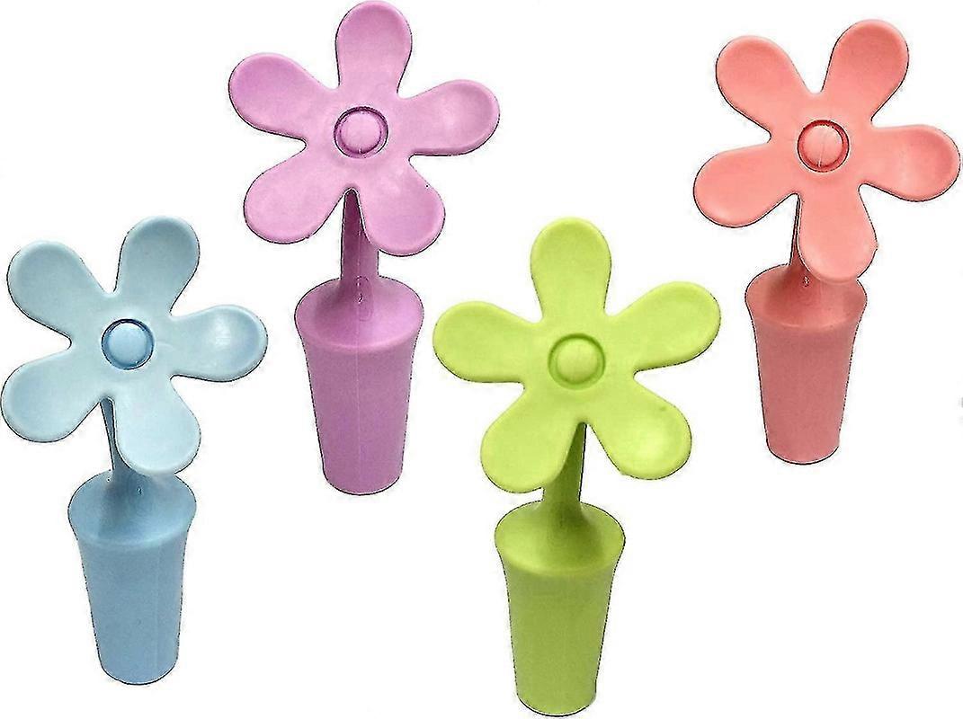 Flower & Wine Bottle Stoppers, Silicone Sunflower Shape (4pcs) for Bottles
