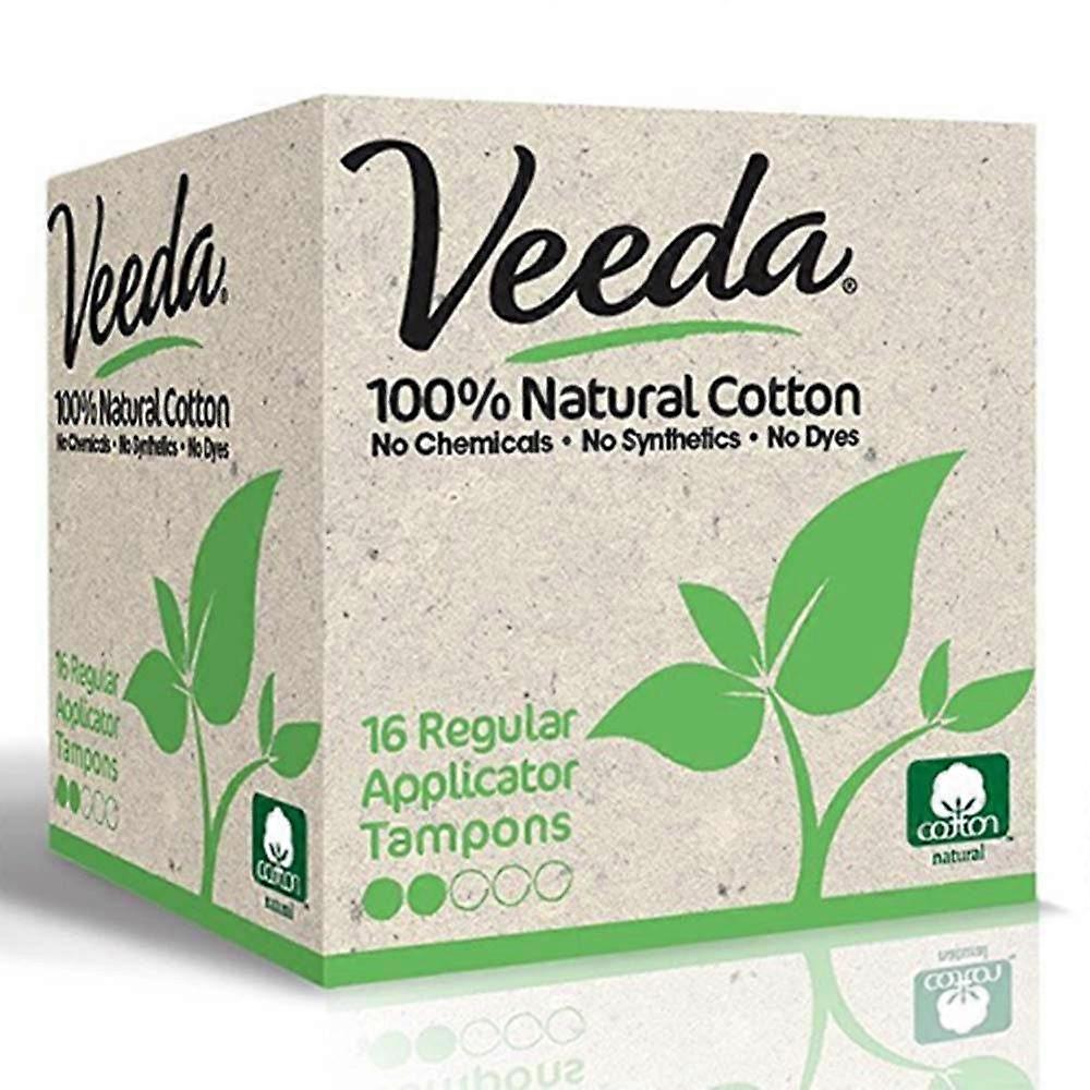 Veeda 100% Natural Cotton Tampons With Applicator, Regular, 16 Ea